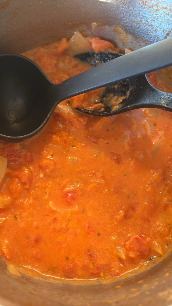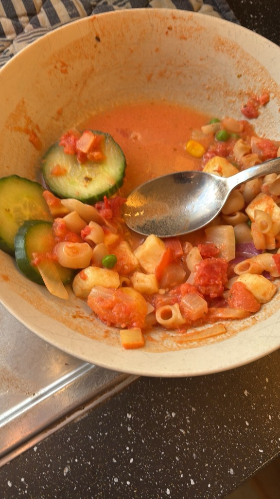 Hej! Hoppas ni mår bra. Igår söndag gjorde jag och sonen tomatsoppa. Den blev god. Vi hade i: gullök, vitlök som vi fräste i en kastrull, och sen tog vi i: hackade tomater, krossade tomater, vatten, grädde, grönsaksbuljong, oregano och salt och till topping stekt halloumi och pasta. Det var så gott. Klockan 3 var dottern på gympa. När vi kom hem bakade vi pepparkakor. Var trevligt